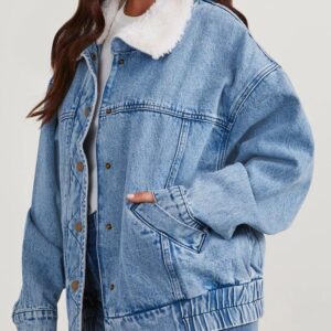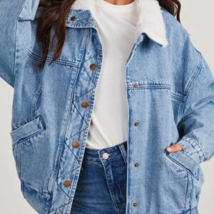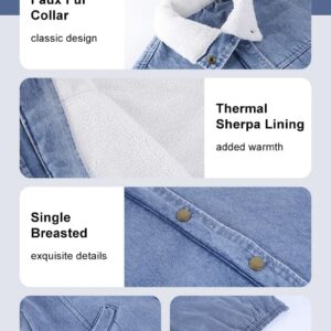 chouyatou Women’s Warm Sherpa Collar Denim Jacket Faux Fur Collar Denim Coat Trucker Jacket