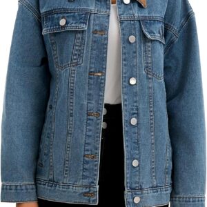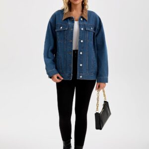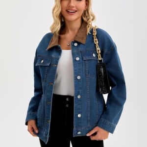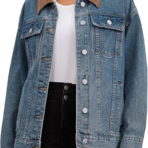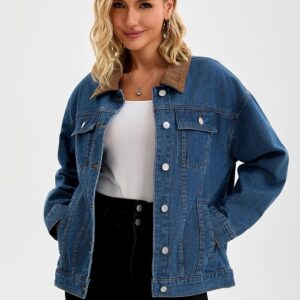 CIMUK Women’s Jean Jacket Button Down Corduroy Collar Long Sleeve Western Shacket Denim Jackets