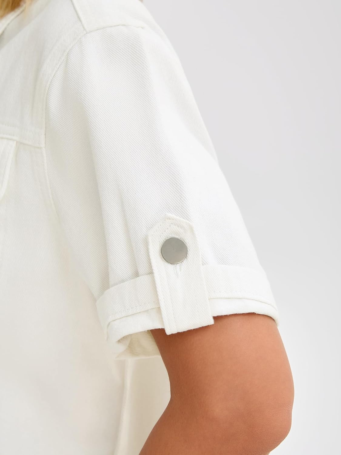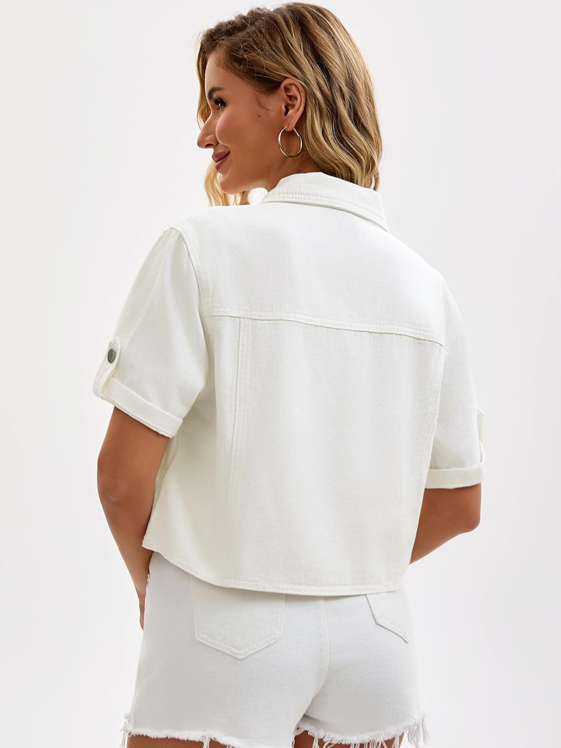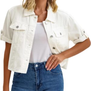 - Classic button-up closure and short sleeves make this jacket easy to pair with dresses, tops, or jeans, making it a versatile piece in your wardrobe.