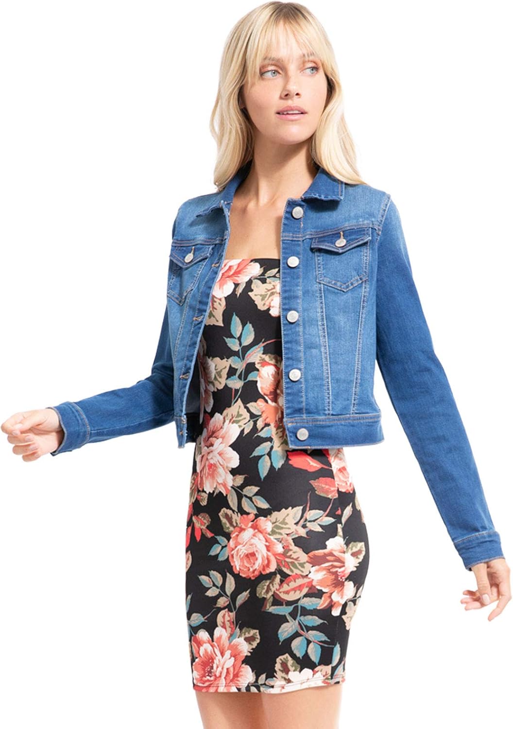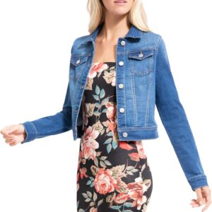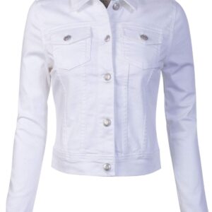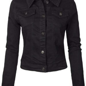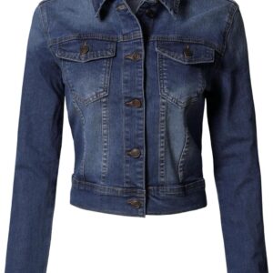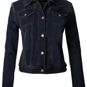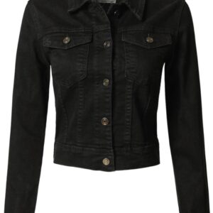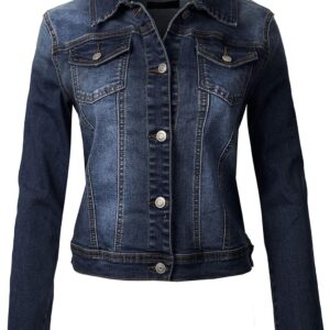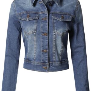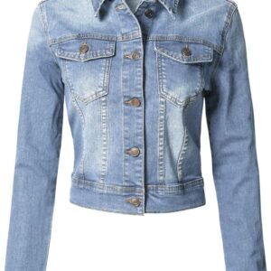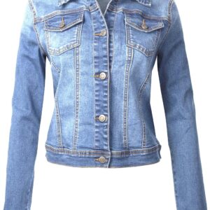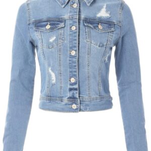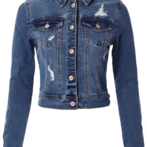 Design by Olivia Women’s Classic\/Destroyed Vintage Washed Long Sleeve Denim Jean Jacket