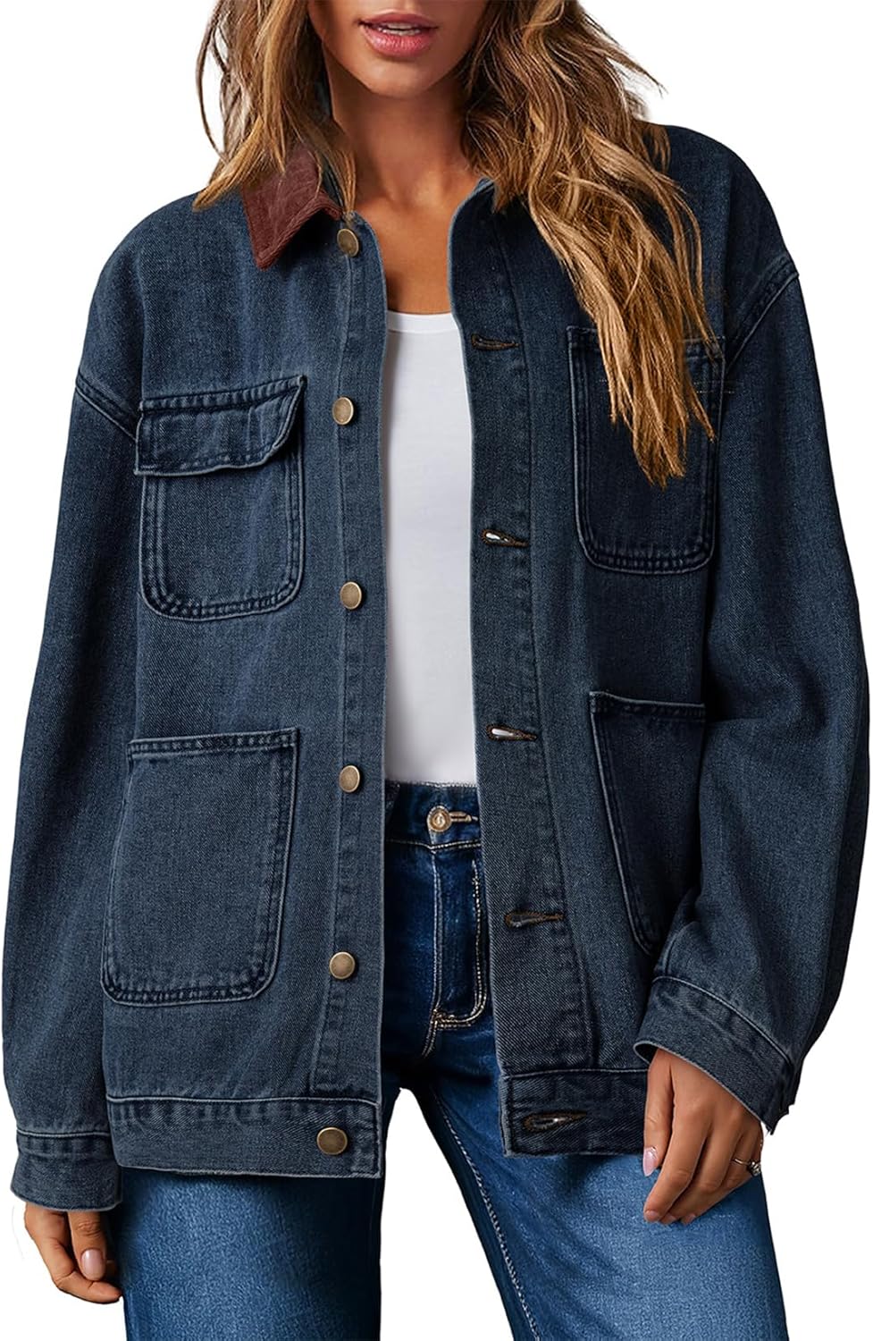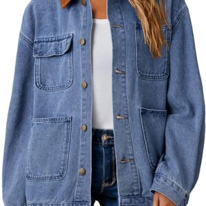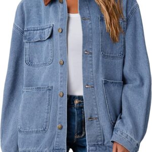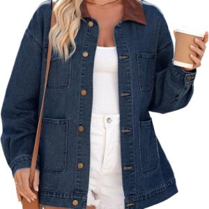 Dokotoo Denim Jackets for Women Casual Long Sleeve Oversized Jean Jacket Fall Clothes 2025