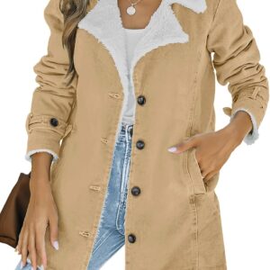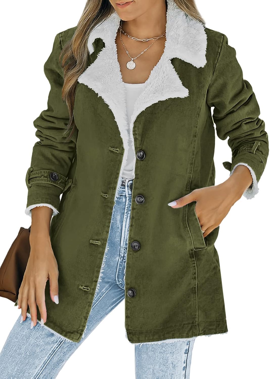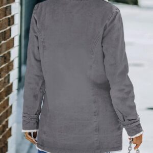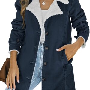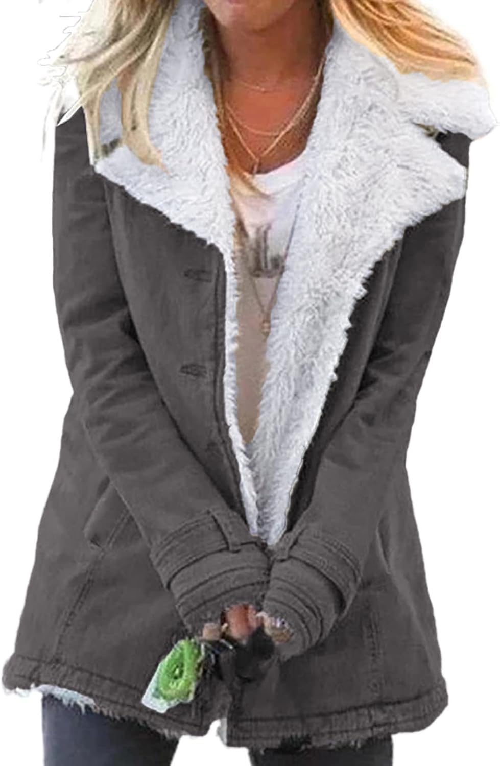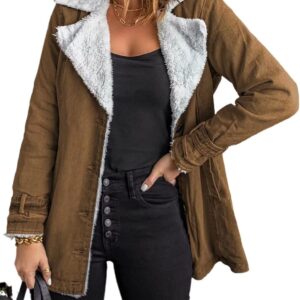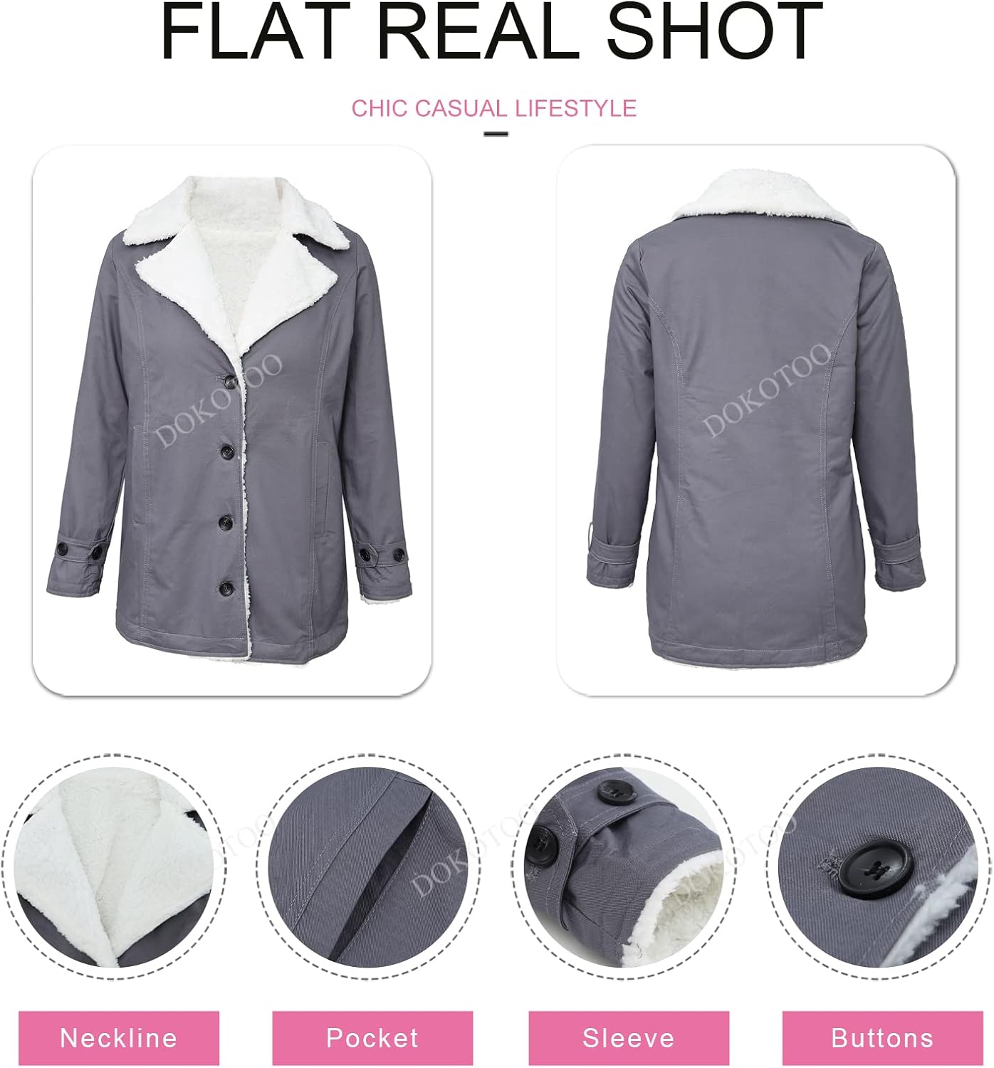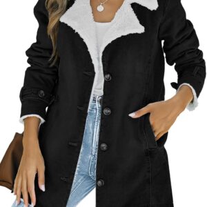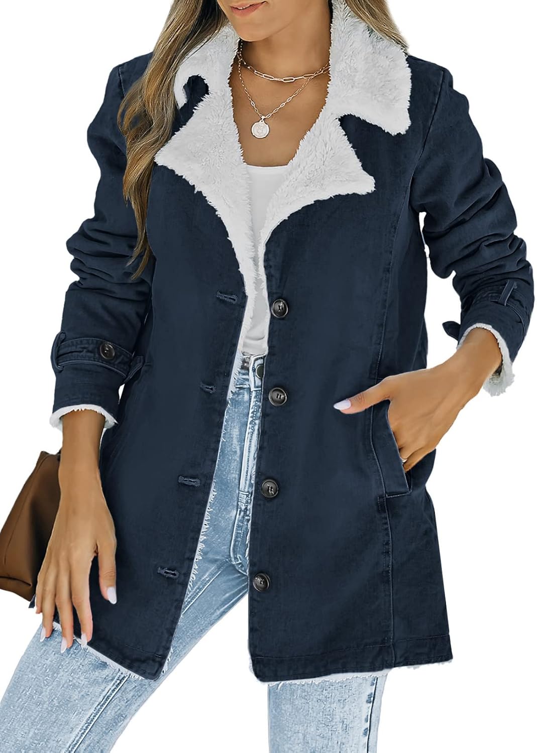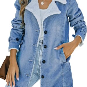 Dokotoo Womens Winter Warm Jean Jacket Stand Collar Wool Liner Sherpa Denim Coats Thicker Outerwear with Pockets