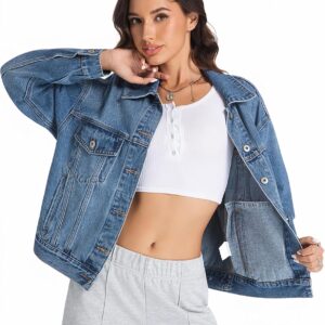 EG CHRIS G Women’s Denim Jacket Loose Relaxed Fit with Pocket Trucker Jean Jacket Coats