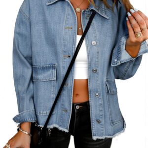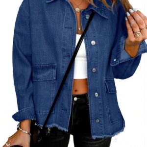 Glamaker Womens Jean Jackets Cropped Casual Denim Jacket Button Down Vintage Loose Frayed Hem Fall Coat with Pockets