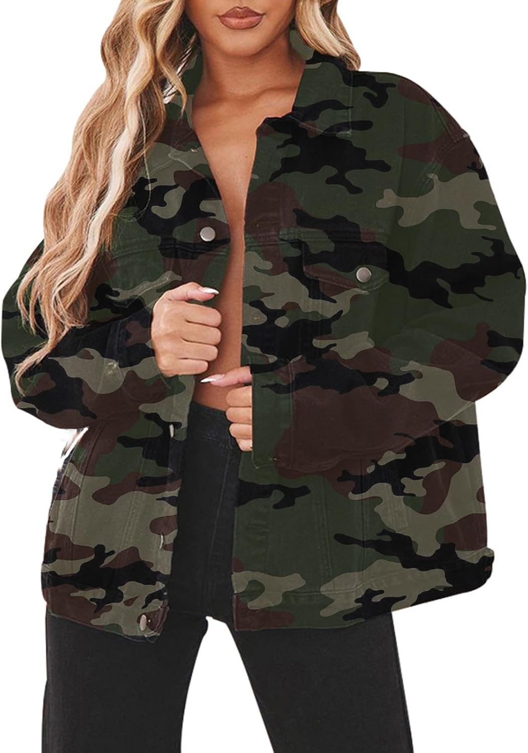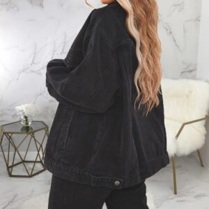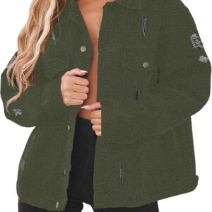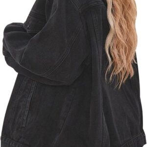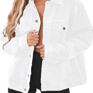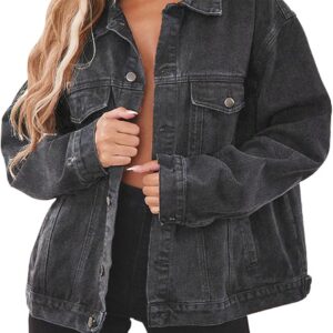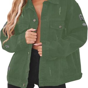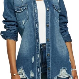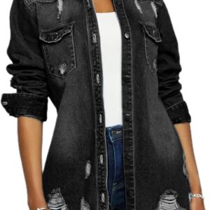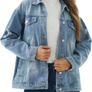 Jean Jacket for Women Distressed Long Sleeve Oversized Denim Trucker Jackets Coat