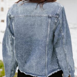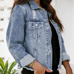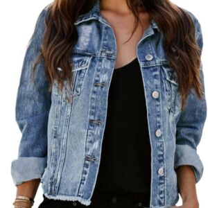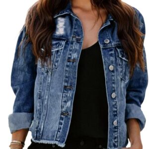 Kedera Womens Denim Jacket Distressed Frayed Ripped Jean Jacket Casual Button Down Light Jackets with Pockets