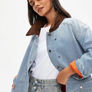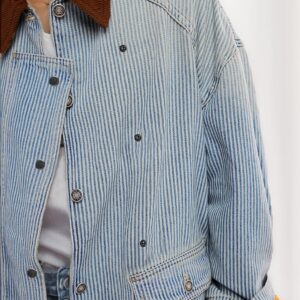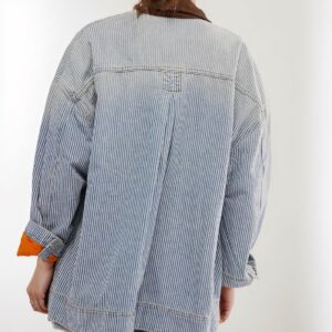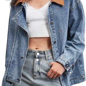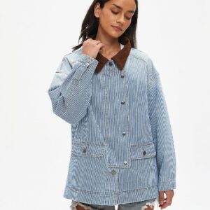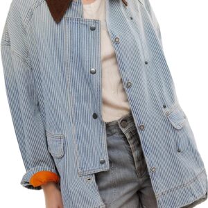 Kedera Women’s Jean Jacket Oversized Striped Denim Jacket Long Sleeve Button Down Fashion Fall Shacket Barn Coat 2024