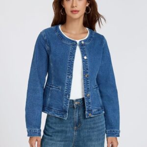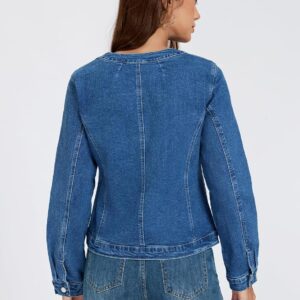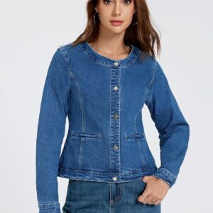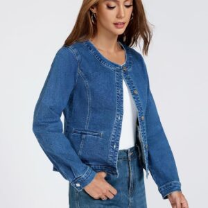 Collarless & Crew Neck: This women's denim jackets features a sleek collarless and crew neck design, offering a minimalist yet stylish aesthetic. The clean lines make it easy to layer with scarves or statement necklaces. Ideal for those who love a contemporary, fuss-free look.
