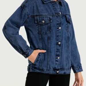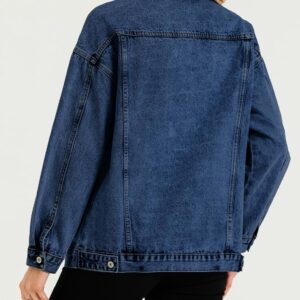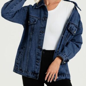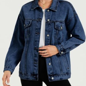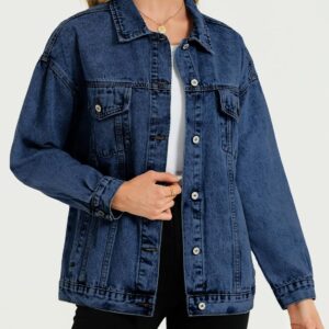 LifeShe Oversized Denim Jacket Women Boyfriend Jean Jacket Trendy Loose Shacket Fall Trucker Coats