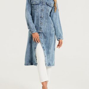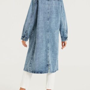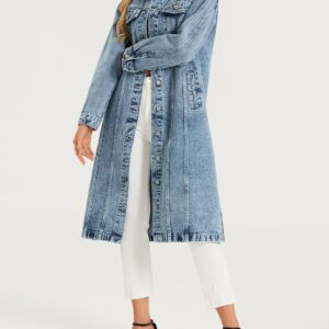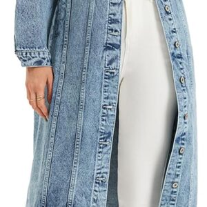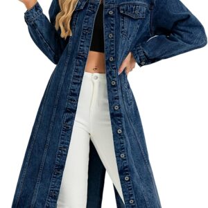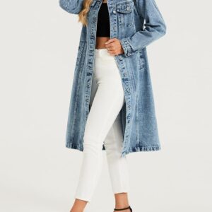 LifeShe Women Denim Jacket Button Down Maxi Long Jean Trench Coat With Pocket