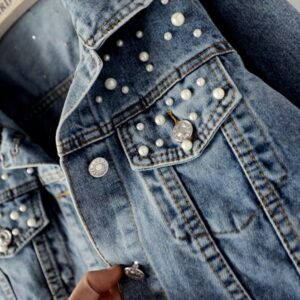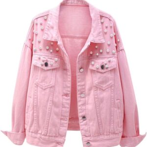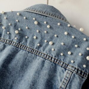 LifeShe Women’s Embroidered Pearl Denim Jean Jacket Coat