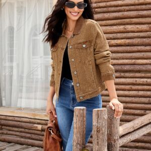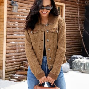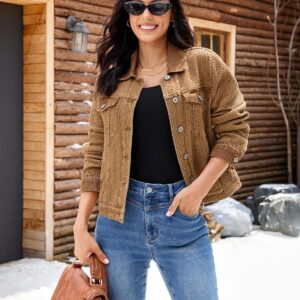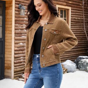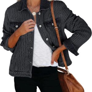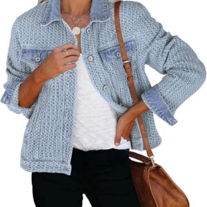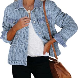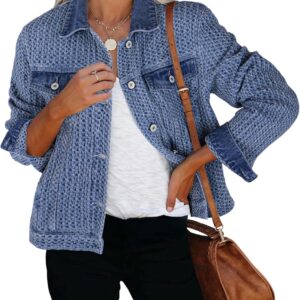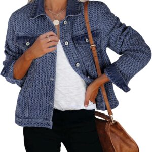 luvamia Jean Jacket Women Trendy Texture Distressed Button Down Long Sleeves Casual Trucker Denim Jackets with Pockets