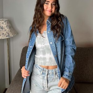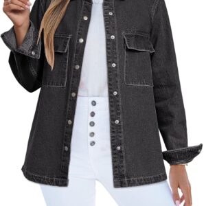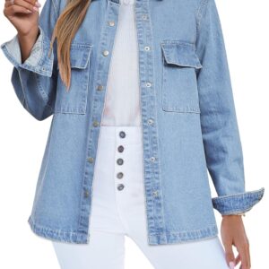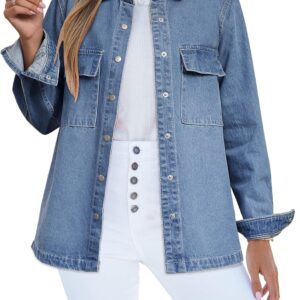 luvamia Jean Jackets for Women 2025 Fall Fashion Oversized Button Down Denim Jacket Western Shacket Jacket with Pockets