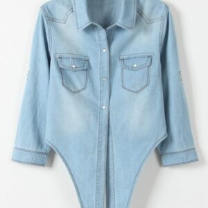 Omoone Women’s 3\/4 Sleeve Denim Crop Top Tie Knot Shirt Cardigan