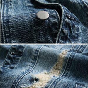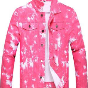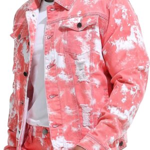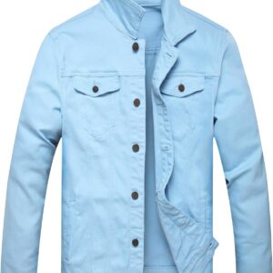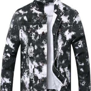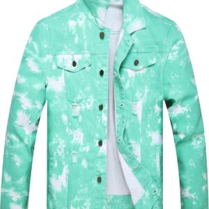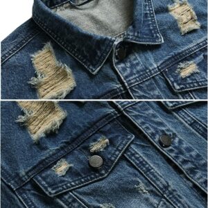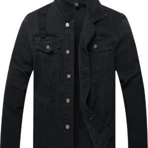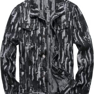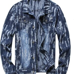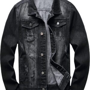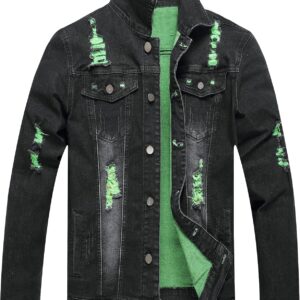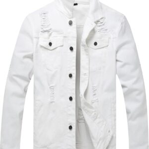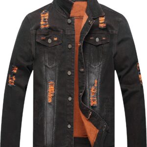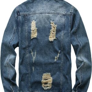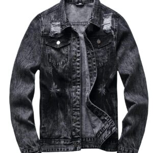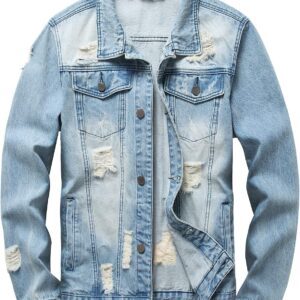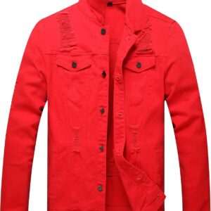 RANMCC Jean Jacket for Men Slim Fit Ripped Denim Jacket Coat