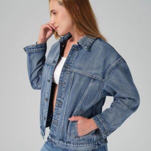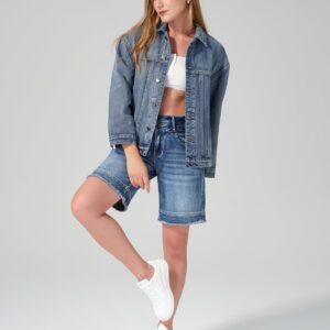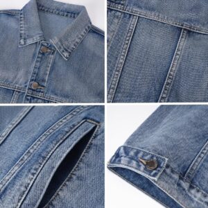 roswear Women\u2019s Denim Jackets Oversized Button Long Sleeve Washed Jean Trucker Jacket with Pockets