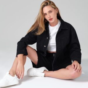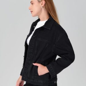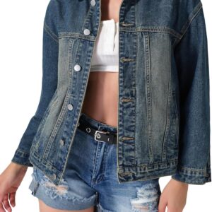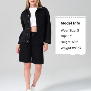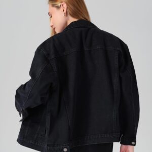roswear Women\u2019s Denim Jackets Oversized Button Long Sleeve Washed Jean Trucker Jacket with Pockets