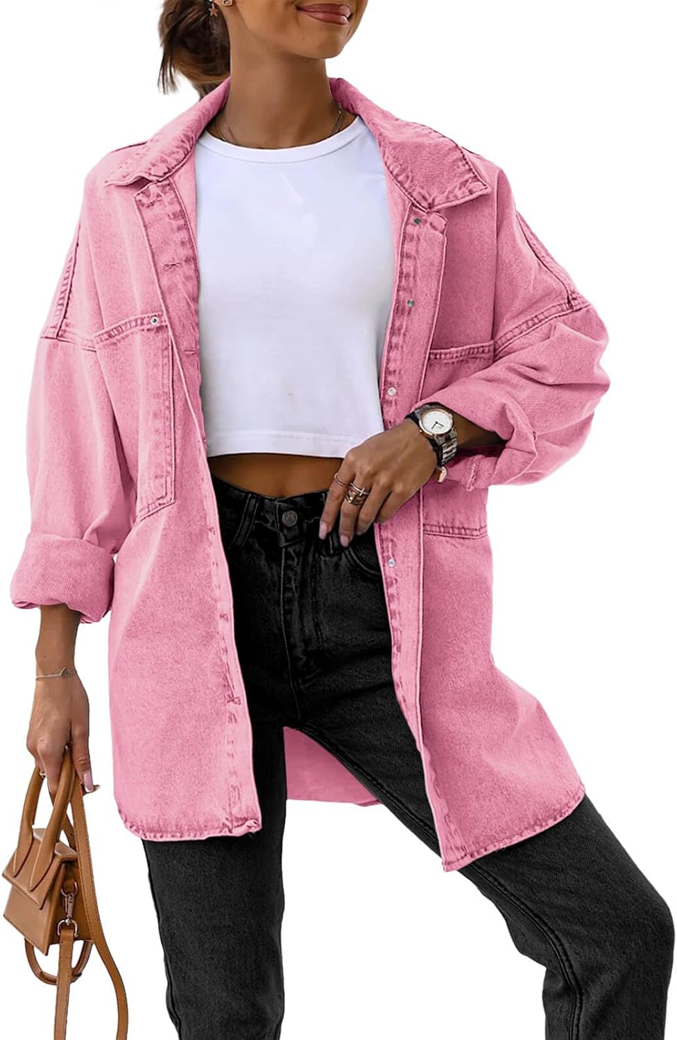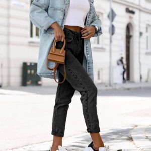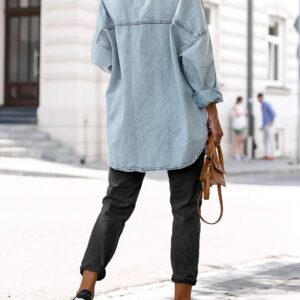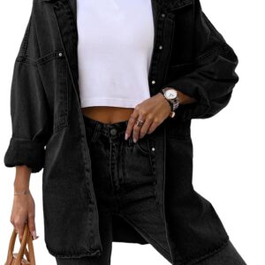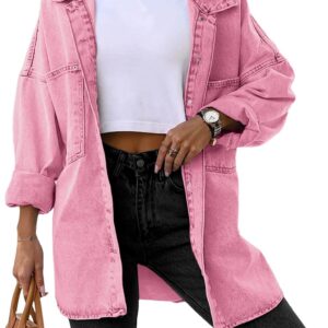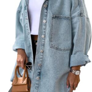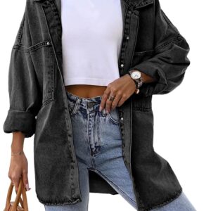 Saodimallsu Women’s Oversized Denim Jackets Casual Button Down Long Boyfriend Jean Coats with Pockets