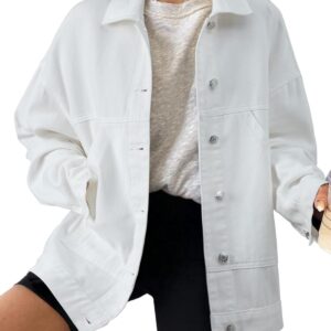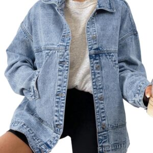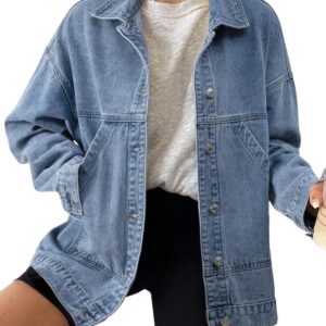 SHEWIN Womens Denim Jacket Casual Long Sleeve Drop Shoulder Button Front Jean Jacket Coat With Pockets