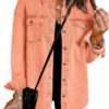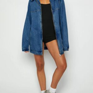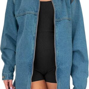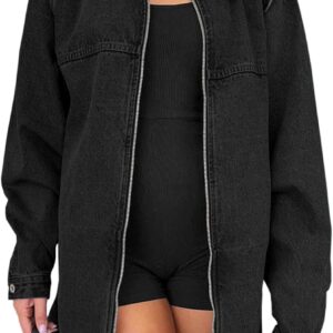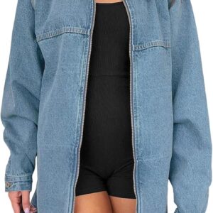 Tankaneo Womens Oversized Denim Jackets Casual Zip up Spring Long Sleeve Jean Jacket with Pocket