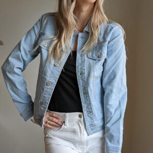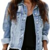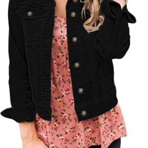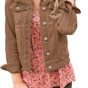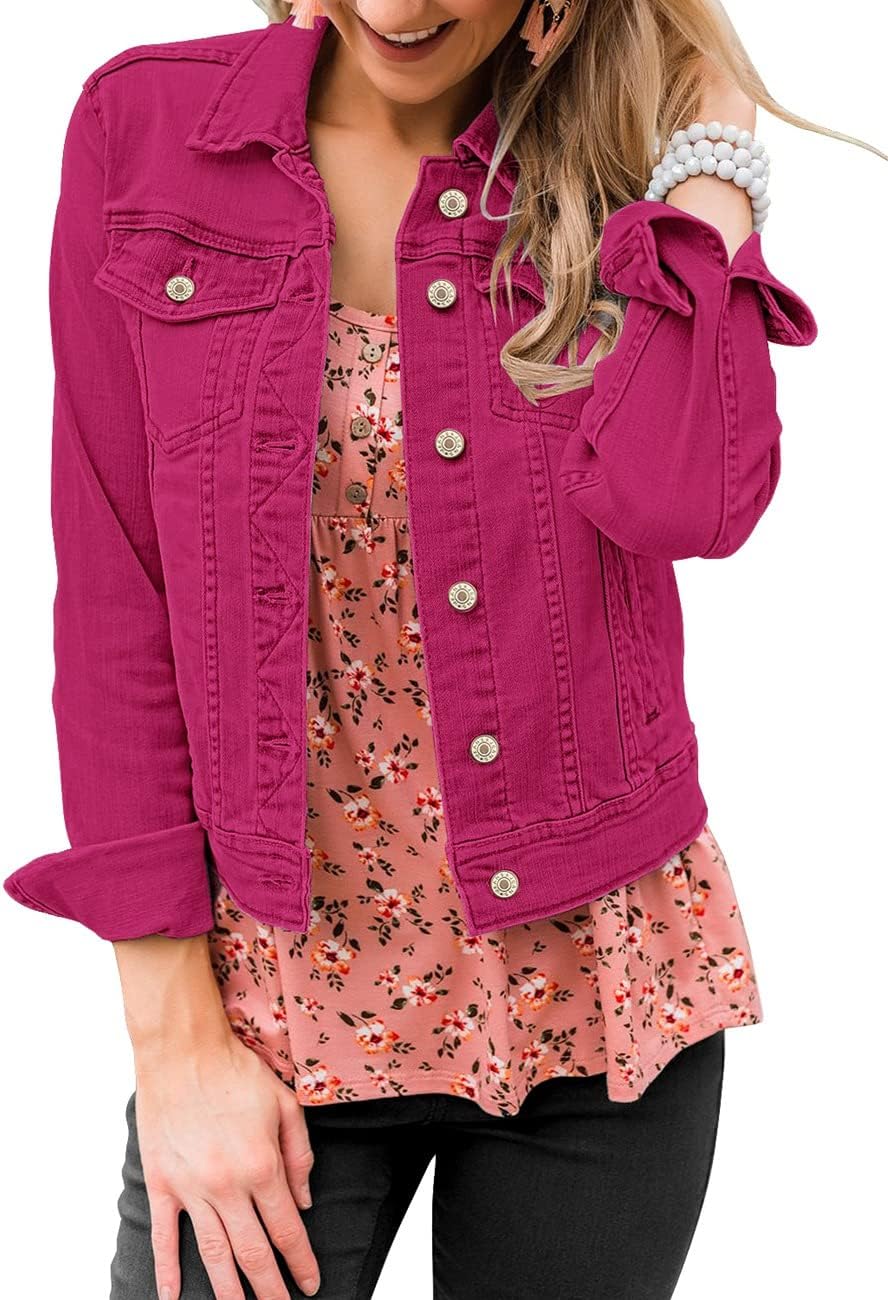 Vetinee Womens Stretch Button Down Long Sleeve Pockets Denim Jean Trucker Jacket