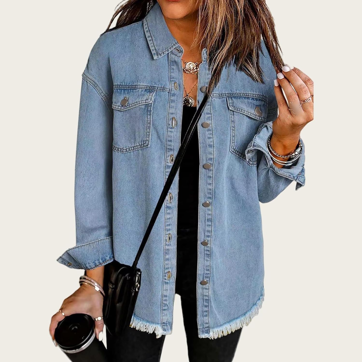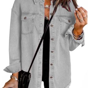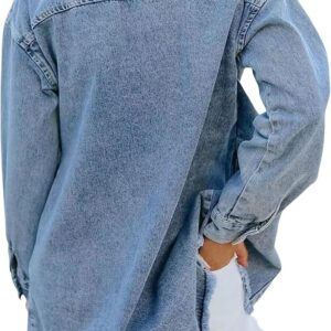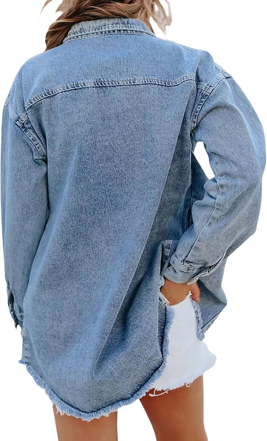 Women’s Oversized Denim Jacket Lightweight Button Down Long Jean Jacket Casual Boyfriend Distresse Jacket Coats